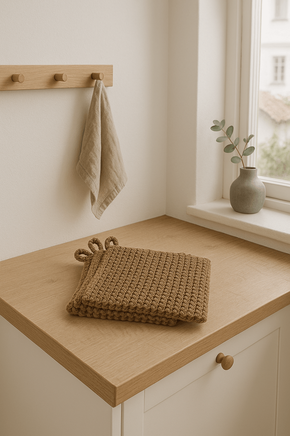 Met dit haakpatroon maak je zelf stijlvolle, stevige pannenlappen die niet alleen handig zijn in de keuken, maar ook mooi gezien mogen worden.